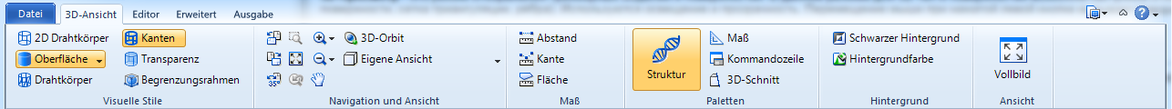 Die Werkzeuge, Einstellungen, Modes und Optionen für 3D-Modellanzeige liegen auf 3D-Ansicht-Reiter: