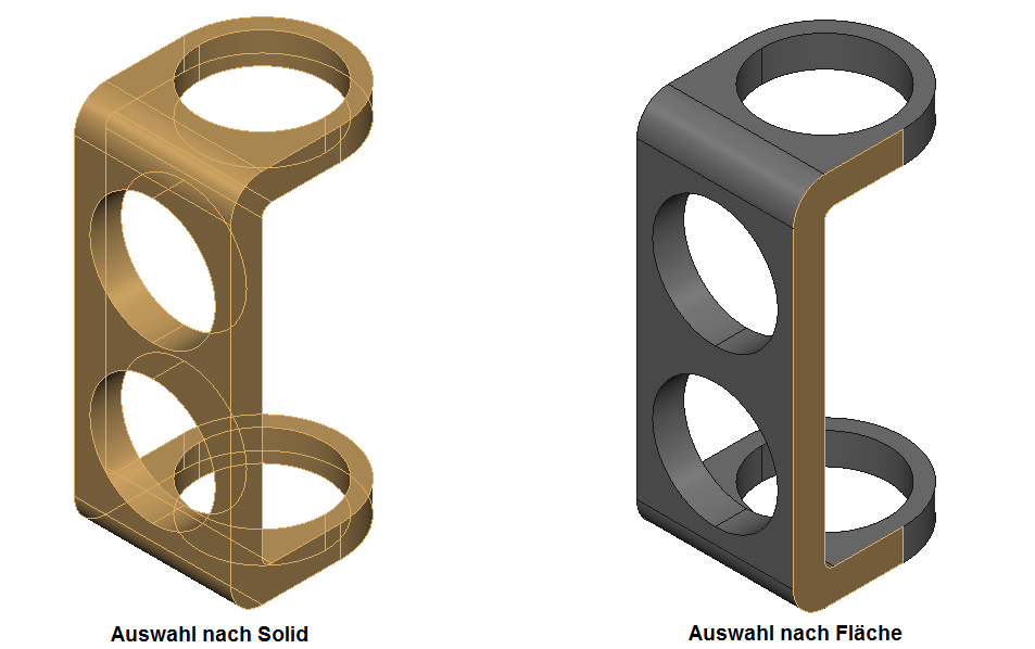 Hinweis: Zum Umschalten zwischen den Optionen Auswahl nach Solid und Auswahl nach Fläche während der Arbeit mit 3D-Modell halten Sie die Umschalttaste gedrückt.