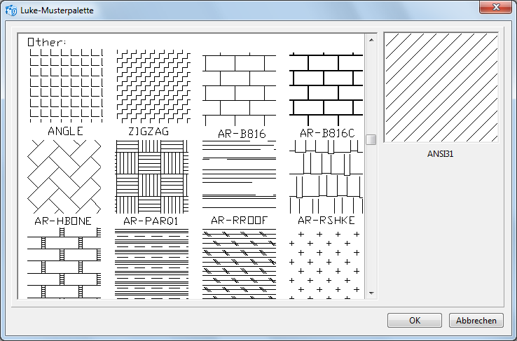 Durchsuchen, um die Schraffur-Kollektion zu öffnen (siehe Schraffur-Musterpalette - Fenster unten).