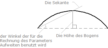 •Bogen – nächster Abschnitt ist - Bogen (wenn der mit der Tastatur eingegebene Wert als Sehne für den neuen Bogen festgelegt wird).