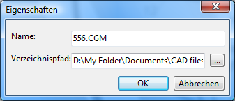 Verzeichnispfad. Er bestimmt die Lage der Datei auf dem Disk. der Pfad ist mit den Namen der favoriten Datei nicht verbunden. Mann kann den Pfad mit der Tastatur eingeben oder auf [...] dem Pfad gegenüber drücken.
