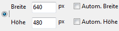 Breite und Höhe erlaubt die benutzerdefinierte Festlegung der Bildgröße der Zieldatei, ohne die Proportionen zu behalten. Falls 'Automatische Höhe' ausgewählt wurde, dann ist