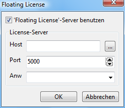 2.Im neuen Fenster aktivieren Sie die Option 'Floating License Server' benutzen, um die 'Floating License' - Registrierung zu benutzen: