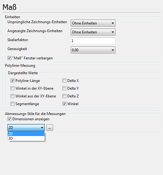 •Ursprüngliche Zeichnungs-Einheiten – wie man die CAD-Einheiten der Zeichnung interpretiert. Benutzt nur im 2D-Modus.