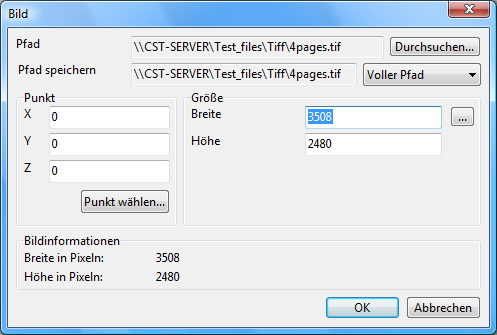 Der Abschnitt Bildinformationen enthält die Angaben über die Bildgröße.