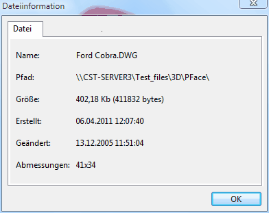 Das Dialogfenster Dateiinformation für die 3D Dateien hat nur eine Registerkarte Datei.