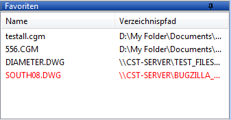 Der Button Favoriten zeigt/versteckt das Panel Favoriten. Ein ‘dockable’ Fenster, dessen Größe sich verändern kann und das eine Liste der unterstützten Formaten enthält, die Sie interessieren. Es zeigt den Dateinamen und Pfad.