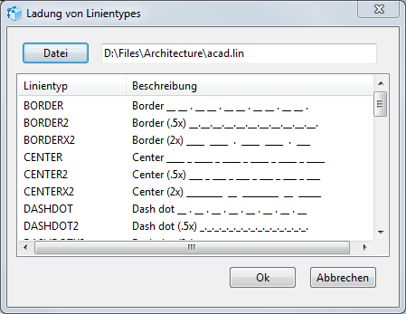 Dialogfenster Ladung von Linientypen