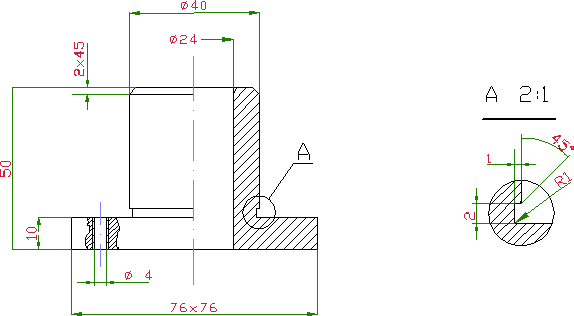 Nehmen wir eine Zeichnung von einem Werkstück und seinem Fragment in einer größerem Skalierung an. Um die echten Abmessungen des vergrößerten Fragments zu bekommen, ist es nötig den entsprechenden Skalierfaktor einzugeben. Machen wir es mit Hilfe der Funktion Größe festlegen... .