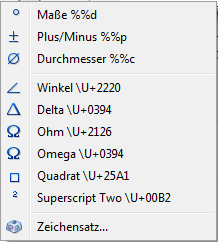 •Wählen Sie Zeichensatz - Untermenü, um die Standard-Windows-Anwendung Sonderzeichen zu öffnen.