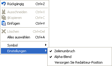 •Rechter Mausklick über das Text-Bearbeitungsfenster öffnet folgendes Popup-Fenster: