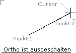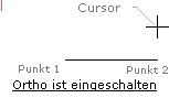 Dieser Modus erlaubt die Einheiten nur in der horizontalen oder vertikalen Richtung auf der Fläche XY zu erschaffen oder zu bearbeiten. Die Modi Ortho und Polarfang können gleichzeitig nicht benutzt werden. Deshalb wird Polarfang automatisch ausgeschaltet, wenn Ortho aktiv ist.