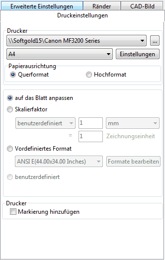 Sie können eines der Standardformate auswählen (DIN: A4, A3, A2, A1, A0) oder ein neues Bildformat eingeben. CADEditorX-Benutzeroberfläche speichert alle benutzerdefinierten Formate, so dass sie nach dem Neuladen verfügbar sind.