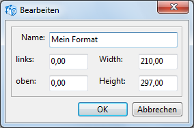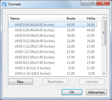•Formate bearbeiten - ruft eine Dialogbox auf, die eine Liste der schon erwähnten Standardformate enthält: