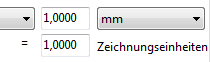 Erlaubt die exakte Übereinstimmung zwischen Zeichnungseinheit und deren Größe in Millimeter, Zoll oder Schritt.