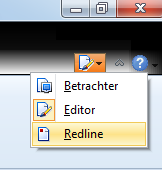Um die Kommentare zu der geöffneten Datei hinzuzufügen, wählen Sie den Modus "Redline". Um das zu tun wählen Sie den nötigen Modus aus der Modusliste in der rechten oberen Programmecke: