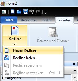 Um das Arbeitsfeld herum werden der rote Rahmen erscheinen, der zeigt, dass der Redline-Modus eingeschaltet ist. In diesem Modus kann man die Objekte der Unterlage nicht ändern. Wenn der rote Rahmen nicht erscheint, drücken Sie das Tab Erweitert und wählen Sie den Befehl Neuer Redline aus dem Dropdown-Liste Redline.
