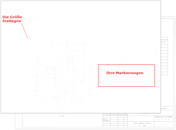 Um die Kommentare hinzuzufügen, kann man alle Werkzeuge des Editors benutzen. Die Kommentare werden zu der Einzeldatei gespeichert und als Voreinstellungen werden sie automatisch bei der Zeichnungseröffnung eingeladen.