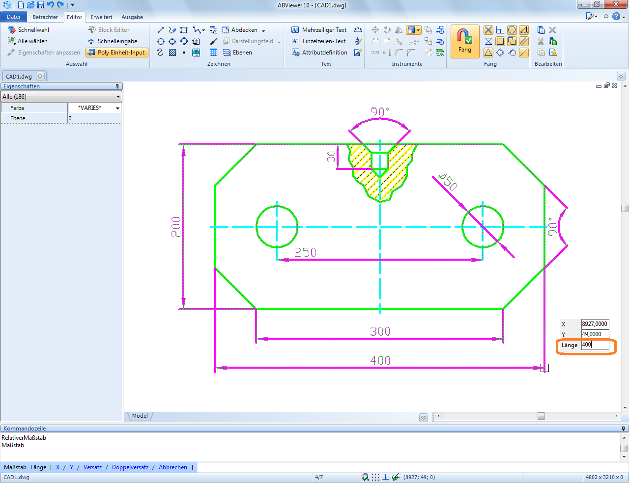 Die Maßlinien erlauben dem User, die Zeichnung zum nötigen Maßstab schnell anzupassen.