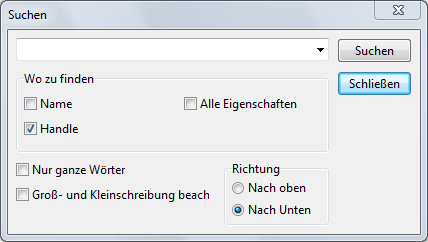Handle. Der eingefügte Text wird nach der Eigenschaft Handle aller Objekte gefunden.
